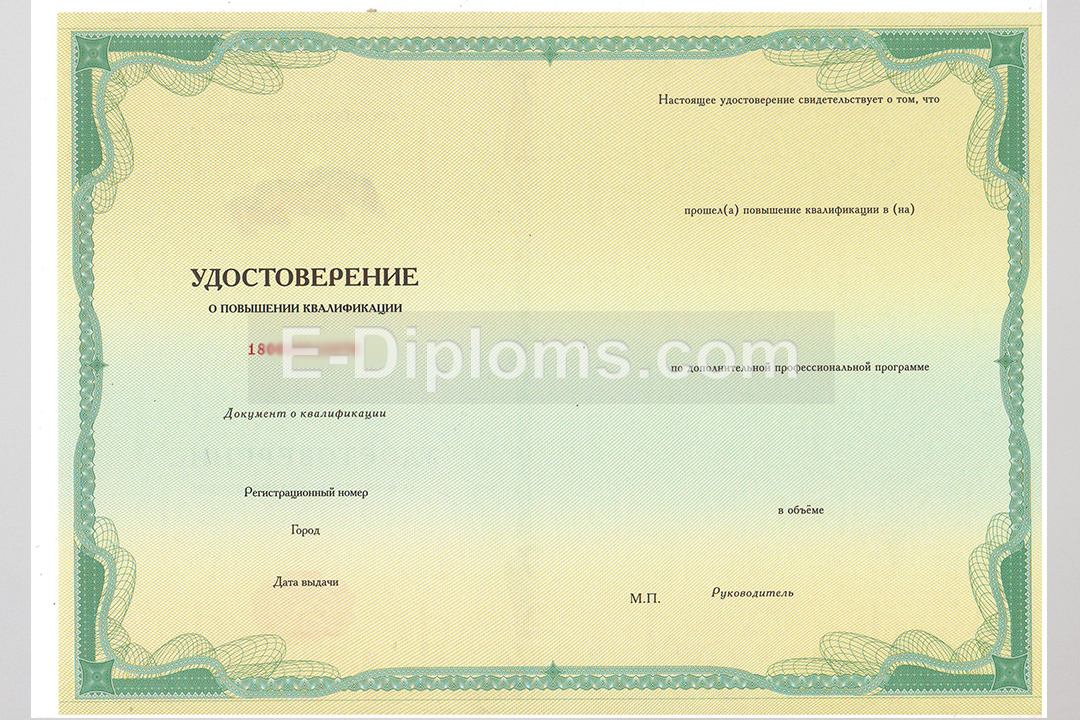 У нас на сайте Вы можете купить удостоверение о повышении квалификации на бланке установленного образца в Москве, а также других городах России. Изготовим качественные корочки быстро, профессионально, анонимно. Доставка бесплатна, оплата при получении, для проживающих в регионах доступна услуга «макет», есть скидки. При заказе до 14.00 привезем уже завтра!